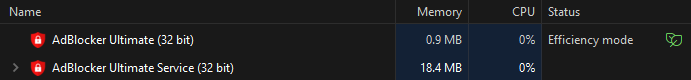 AdBlocker Ultimate now takes advantage of Windows' efficiency mode API. This will decrease system resource usage and will improve energy consumption (great news for laptops!).